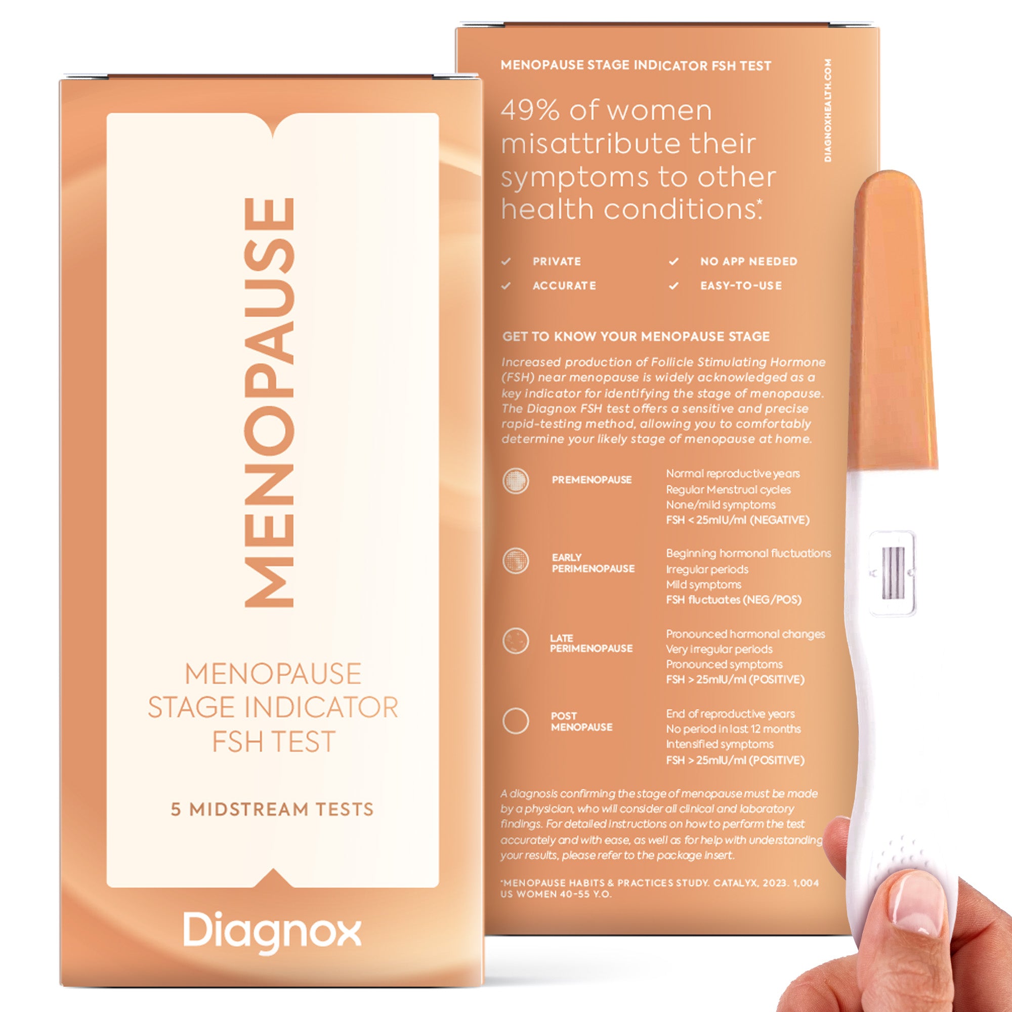 - Simple, Reliable, and Accurate - The Diagnox Menopause Stage Test indicator is a rapid test for the qualitative detection of Follicle-Stimulating Hormone (FSH).