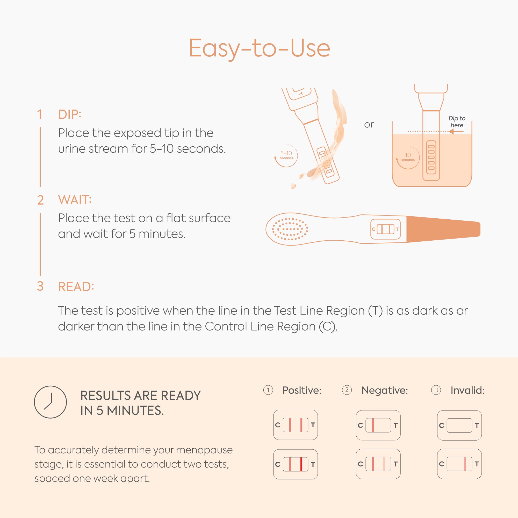 - No Mobile App Needed - This menopause journey test kit includes a clear guide for understanding test results and menopausal symptoms.