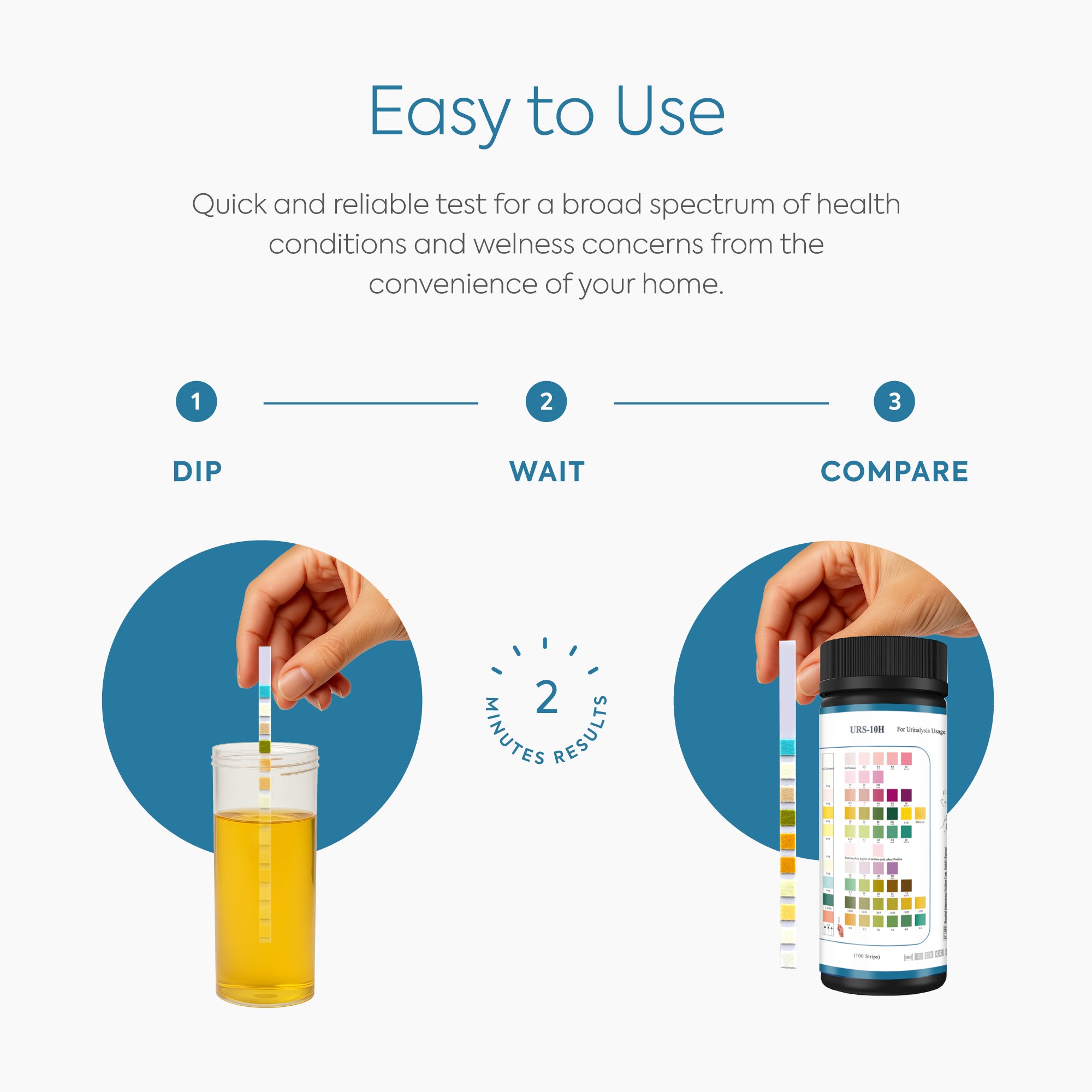 - Easy Use and Rapid Results - Wet test tip in urine for 5–10 seconds, wait 5 minutes, then check for two lines (positive) or one line (negative).